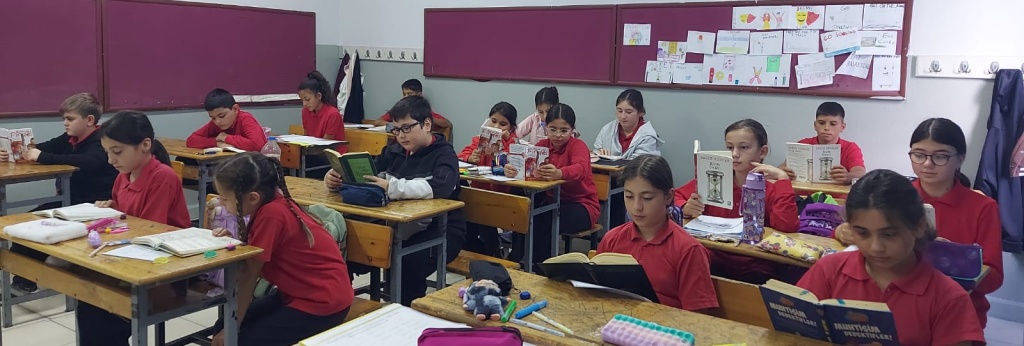 Okulumuzda öğrencilerimizin kitap okuma alışkanlığı kazanmaları için Türkçe Öğretmenlerimiz önderliğinde kitap okuma saatleri düzenlenmektedir.